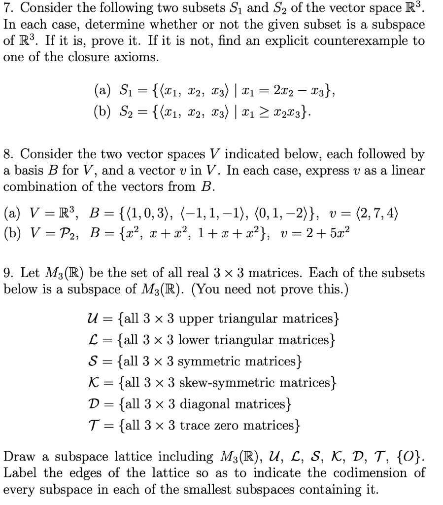 Solved Which Of The Following Subsets Are Subspaces Of R3 Course Hero