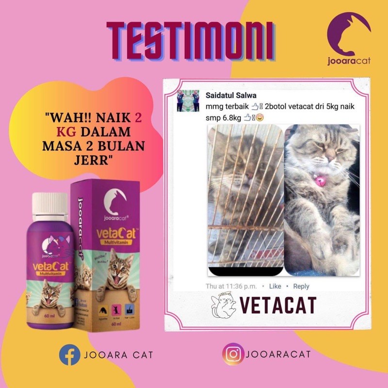 Harga bukan RM 80 bukan RM 50 bukan RM 40. VetaCat adalah multivitamin khas untuk si comel kucing anda. Memperkenalkan VetaCAT Cat MultivitaminVetaCAT dapat membantu- Mengurangkan keguguran bulu- Memberi selera makan dan menggemukkan bulus- Memberi tenaga u.